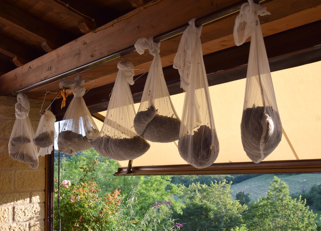 Le piante vengono lasciate crescere nel pieno rispetto della natura, senza uso di erbicidi, né concimi, né insetticidi. In estate, una grande squadra di insetti bottinatori si riunisce nel giardino per lavorare senza riposo all’impollinazione, donando così alle piante una crescita prosperosa. Quando gli insetti lasciano il giardino, Silvia inizia a raccogliere gli steli, a mano, uno ad uno. I fiori vengono poi separati dagli steli e messi a seccare dentro grandi sacchi di garza cullati dal vento. Gli steli rimasti vengono legati in mazzetti che, una volta essiccati, sono ideali per accendere il caminetto. Nulla viene sprecato. Quando i fiori sono secchi, vengono conservati in vasi di vetro e sono pronti per riempire sacchetti, eye pillows, o per la distillazione dell’olio essenziale.
