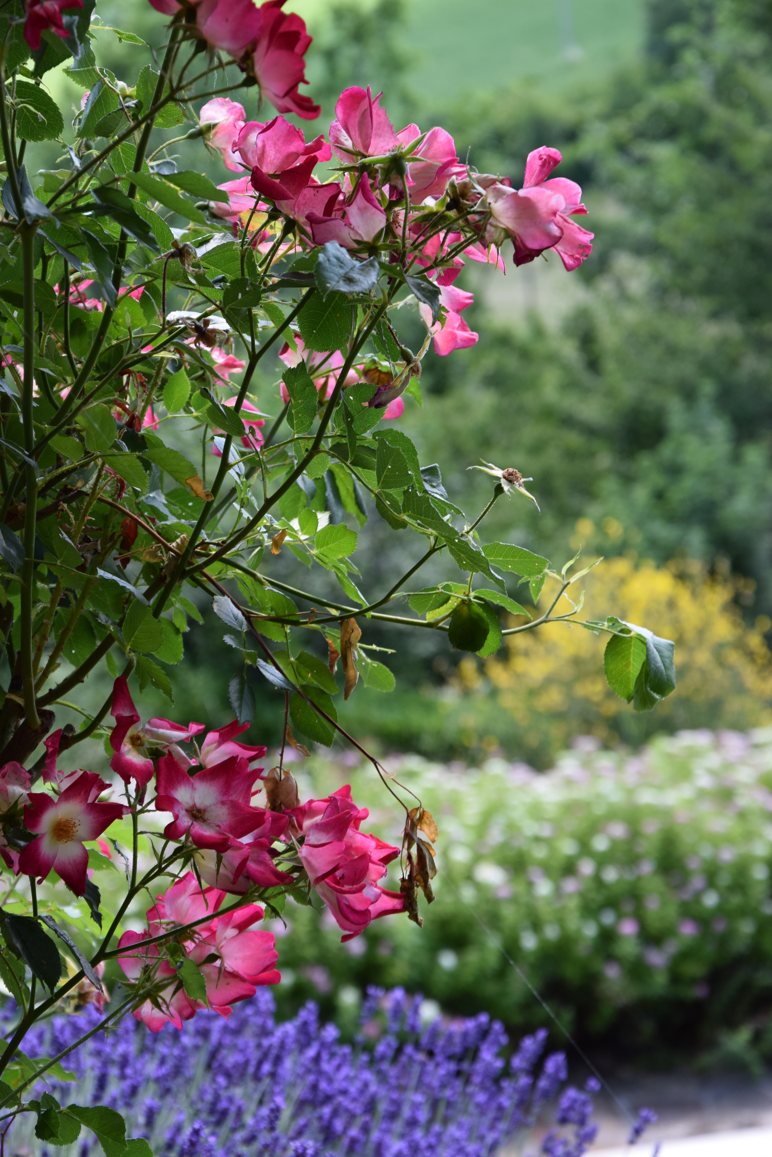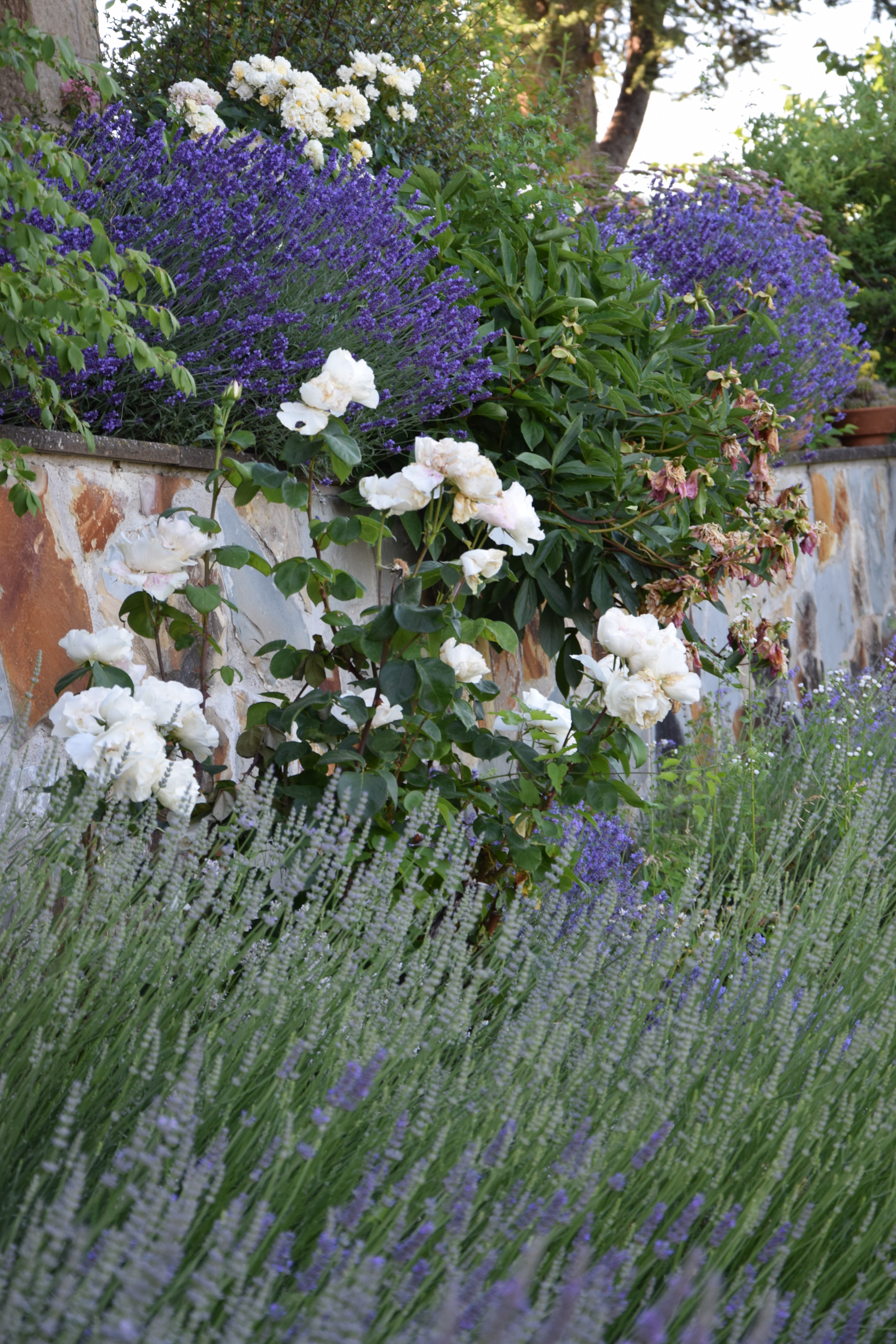 Rose e lavande: un abbinamento perfetto, la lavanda infatti aiuta a tenere lontani gli afidi.