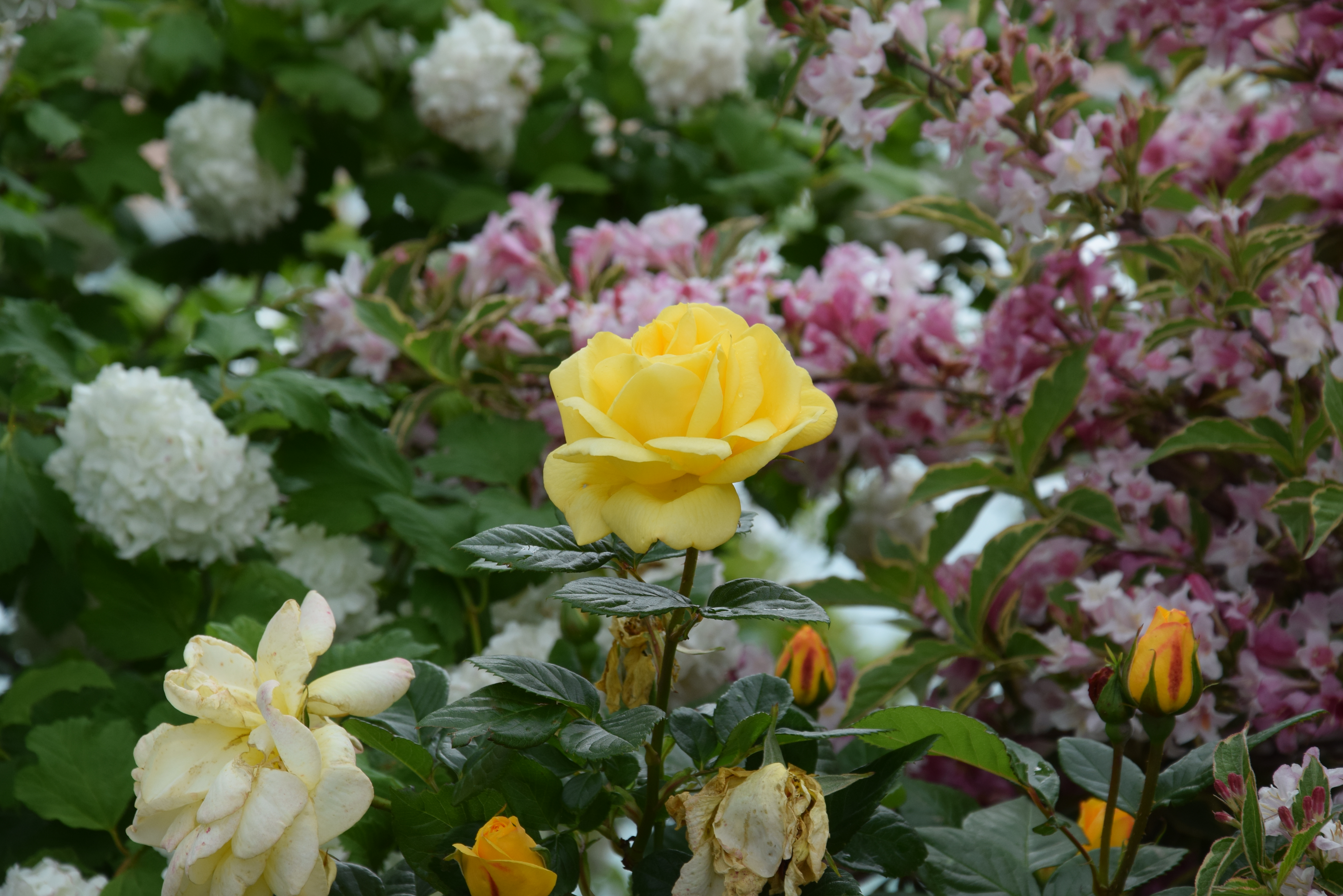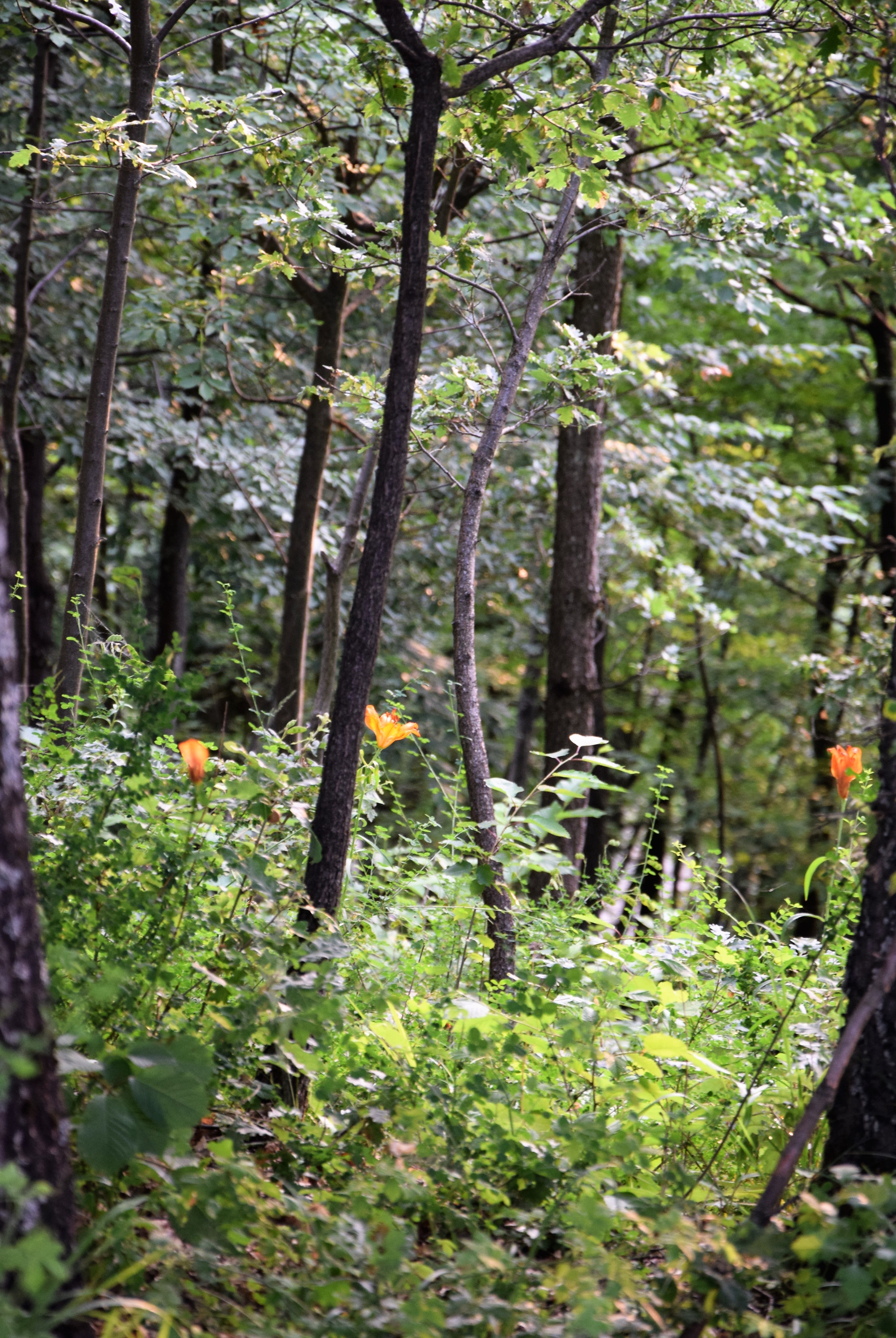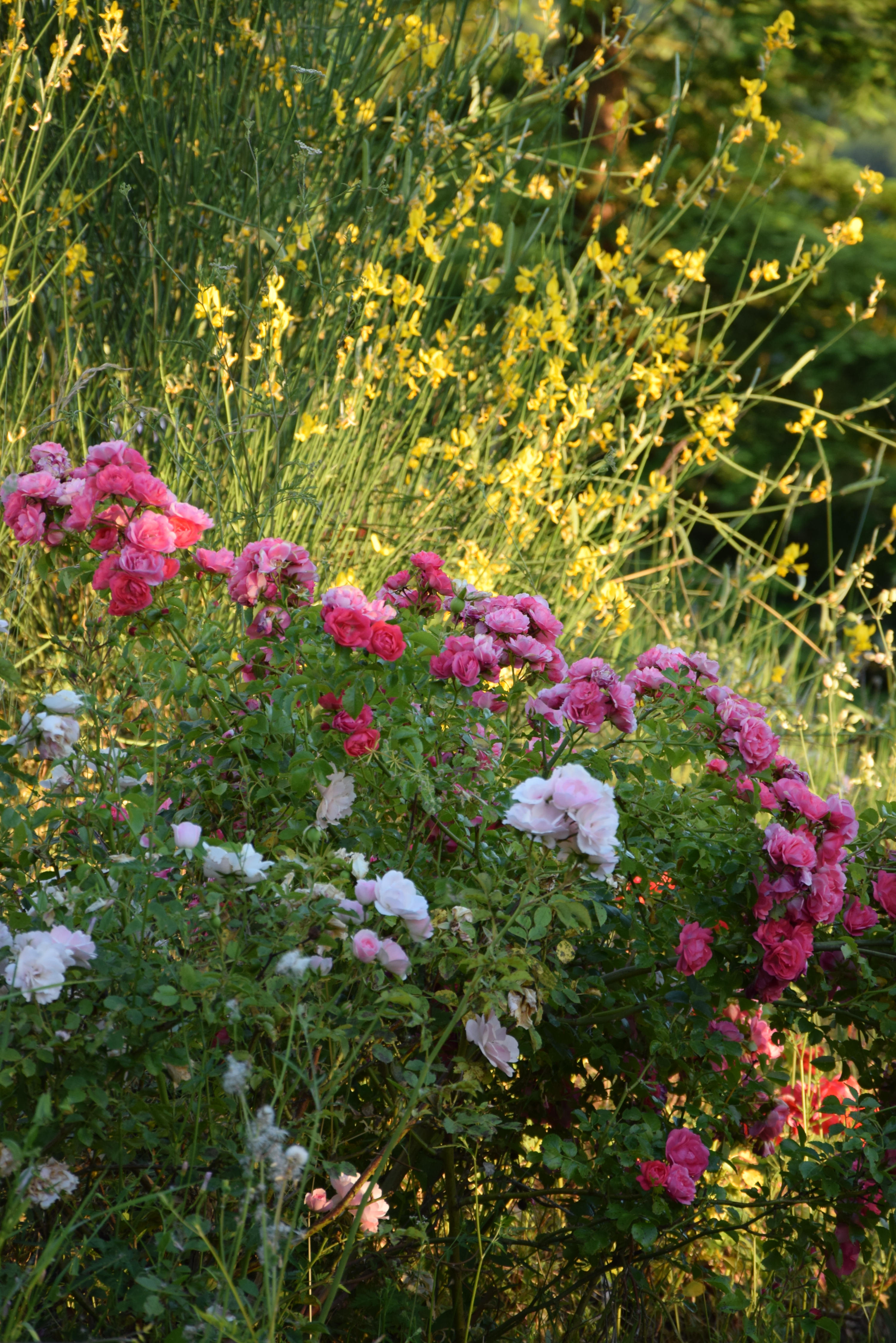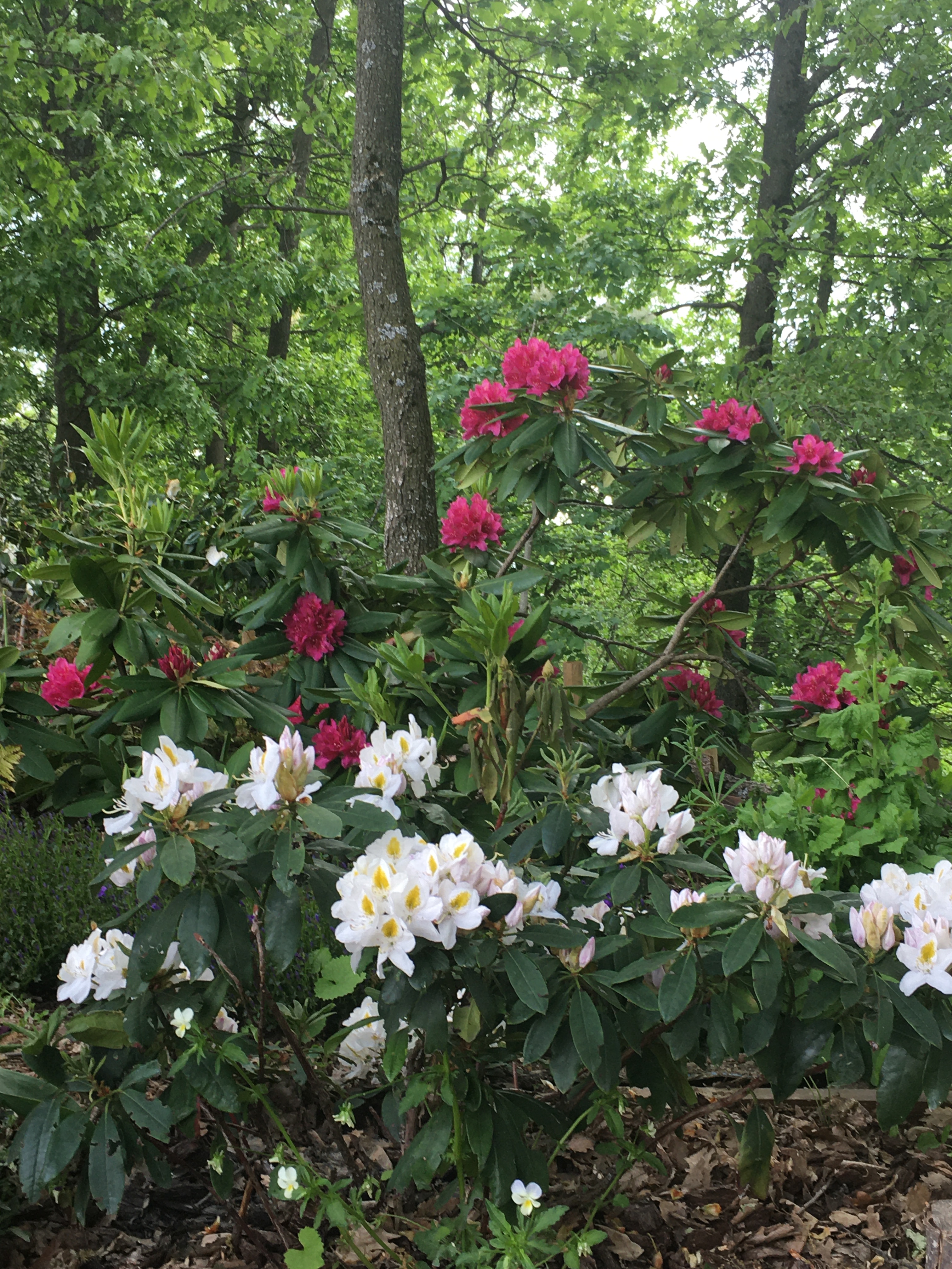 A walk in the wood among surprising spontaneous blooms, such as hawthorn or lilies and then rhododendrons, hydrangeas and camellias.