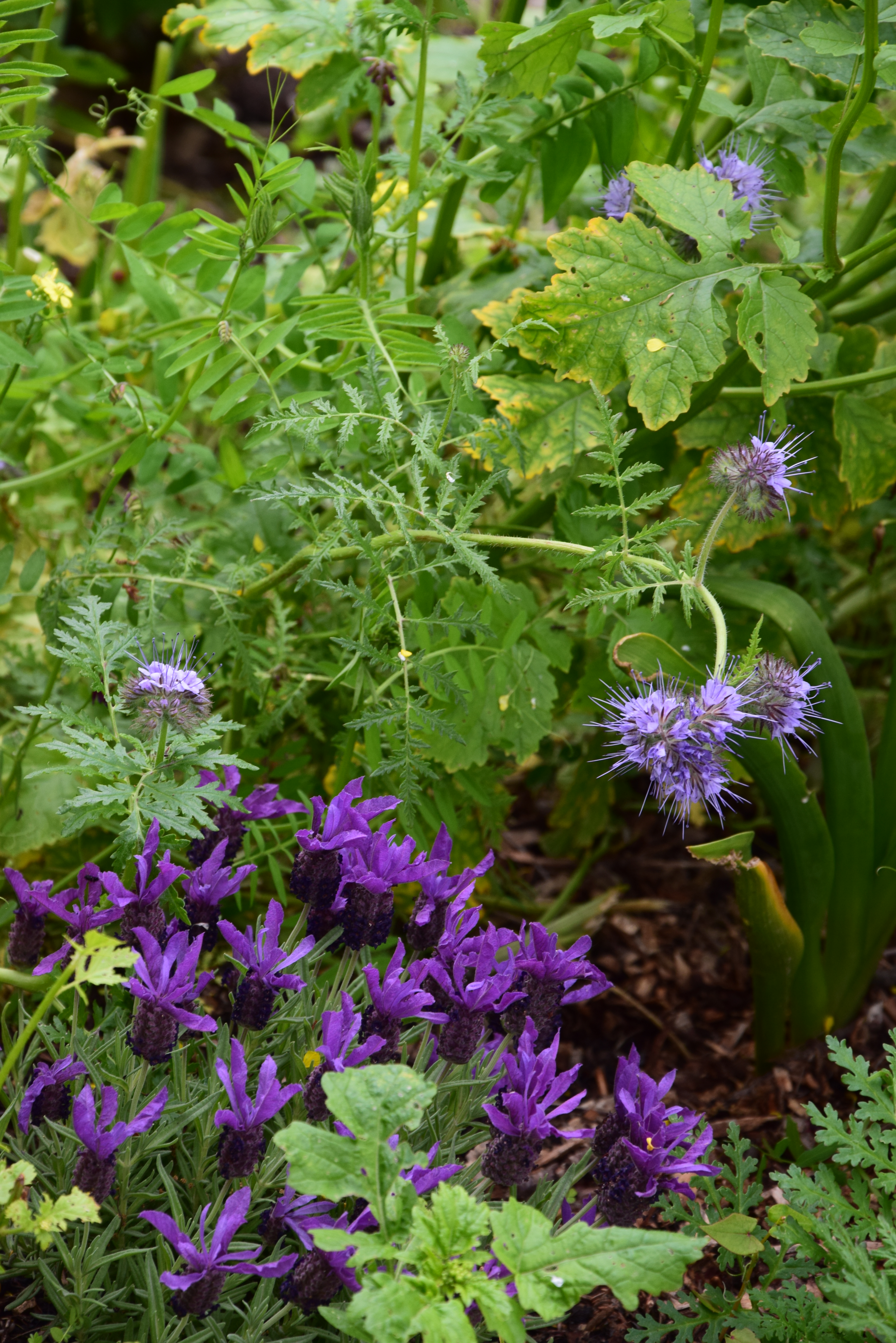 The lavenders in Silvia’s garden are in good company even when they are not in bloom.